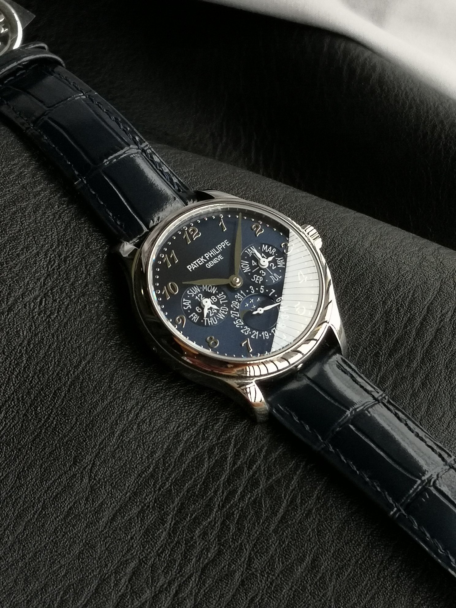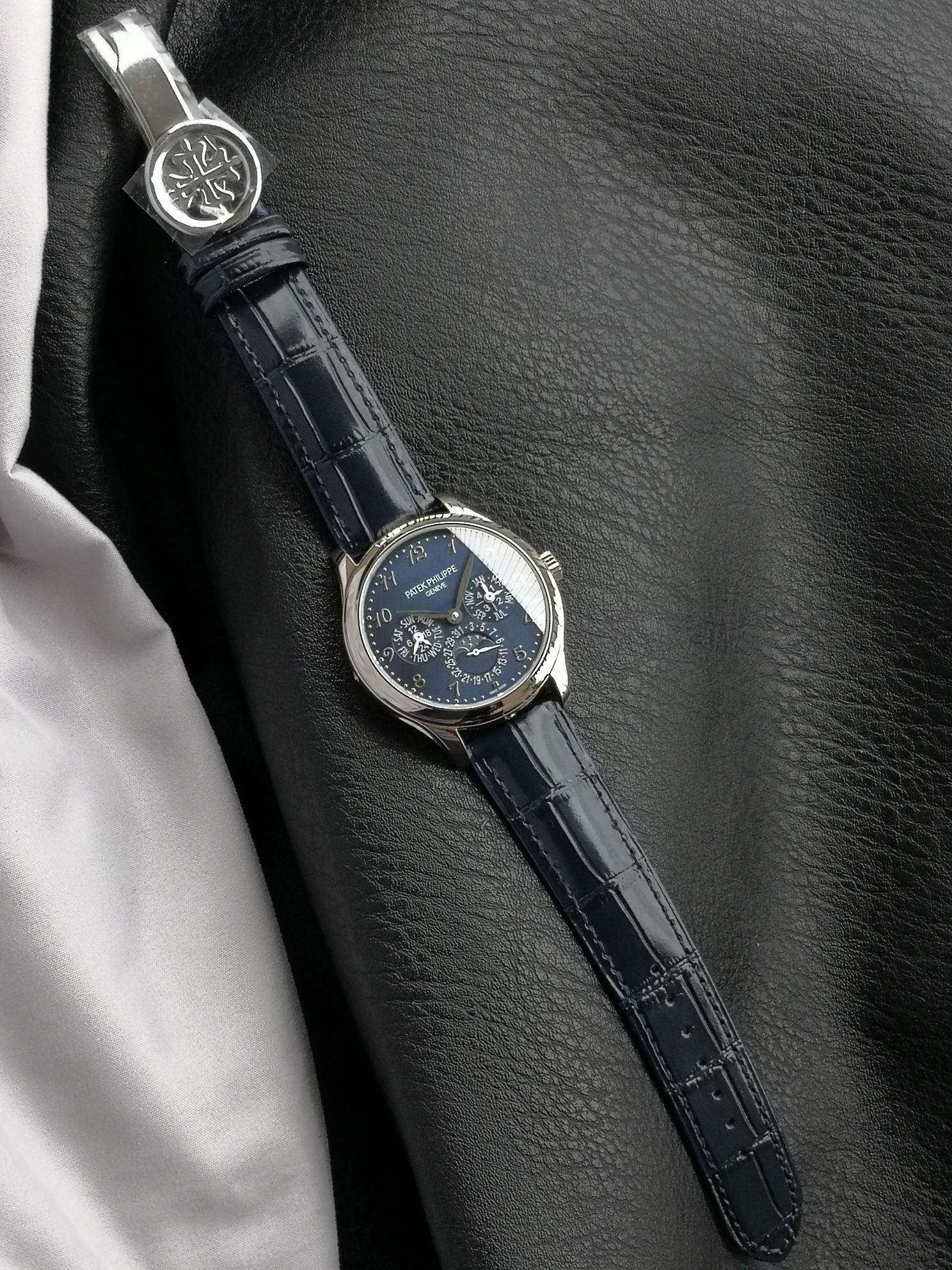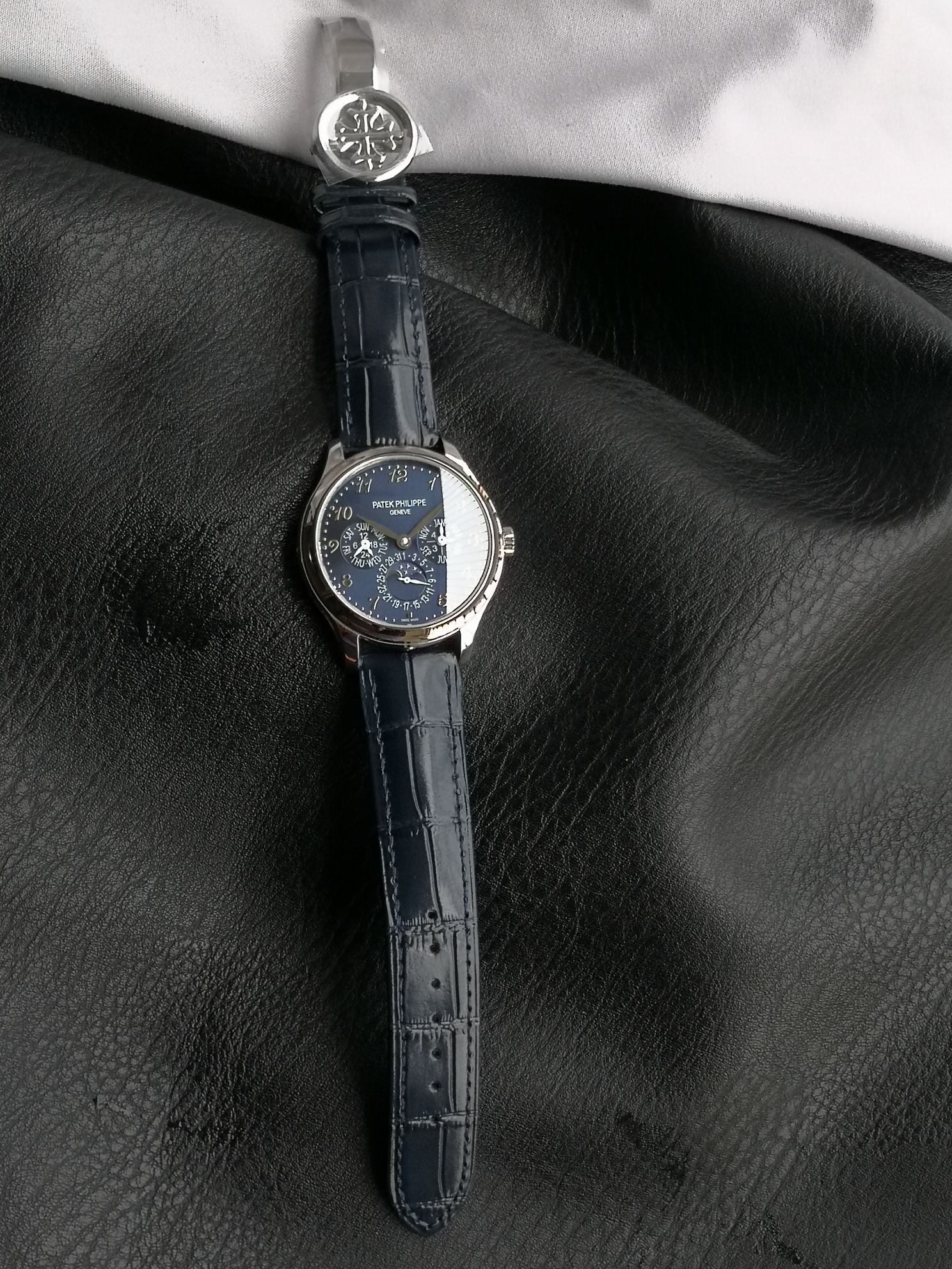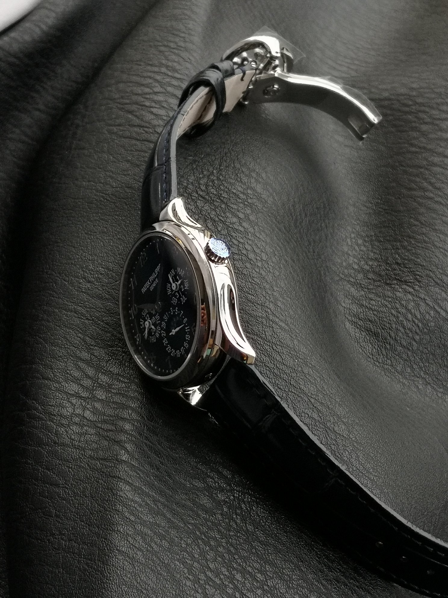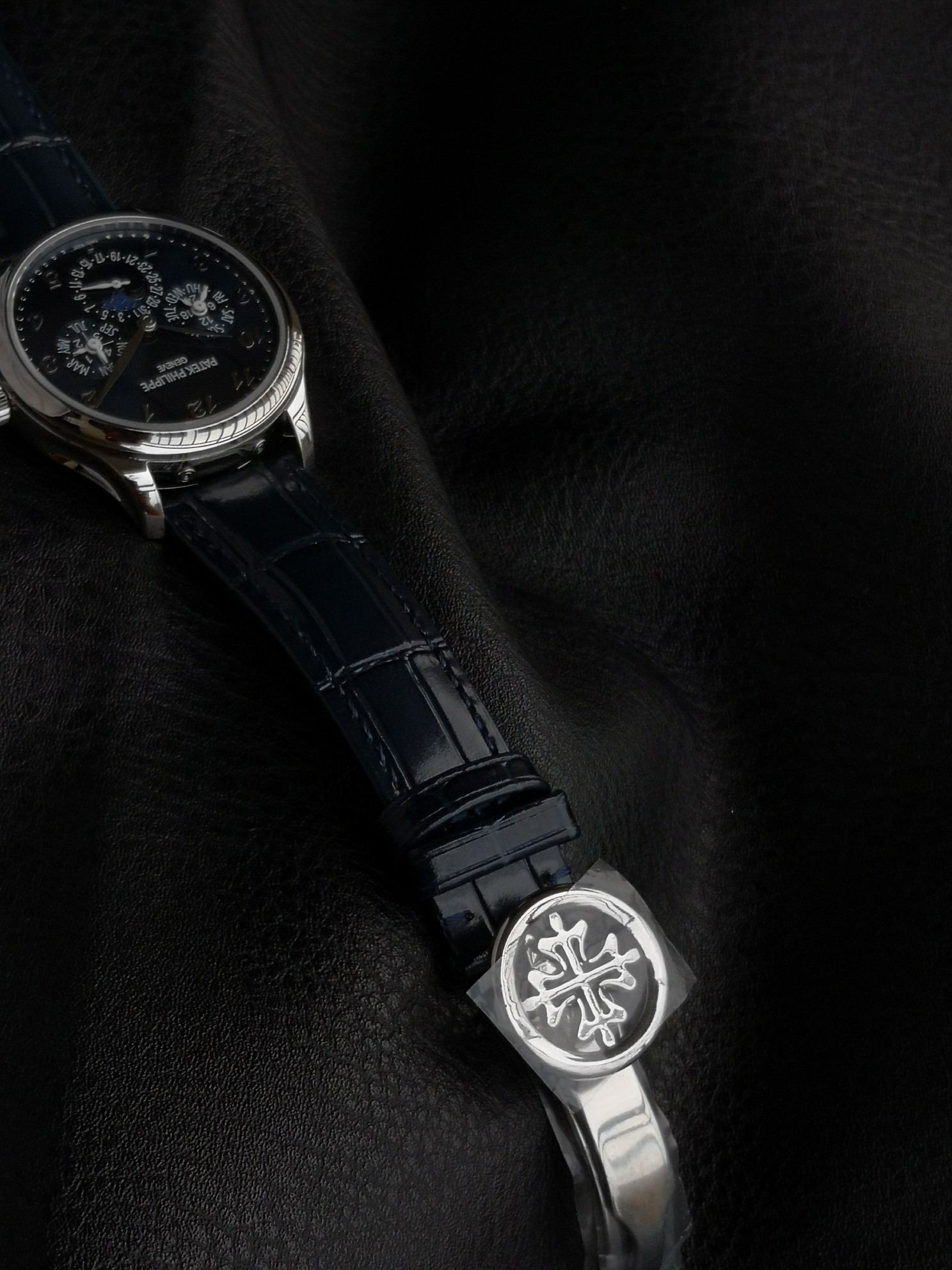 The overall dial layout is spacious and uncluttered, exuding a refined and elegant aesthetic. Paired with an Italian calfskin strap and a PP-logo openwork buckle, it radiates a vintage and sophisticated charm.