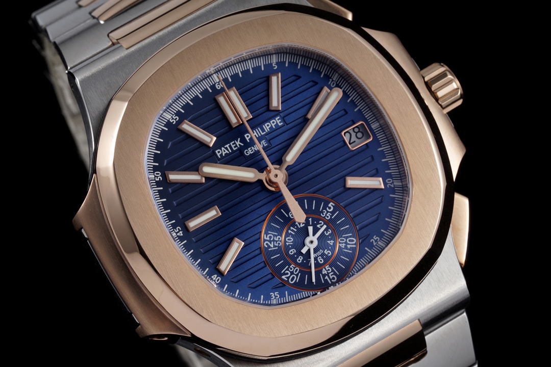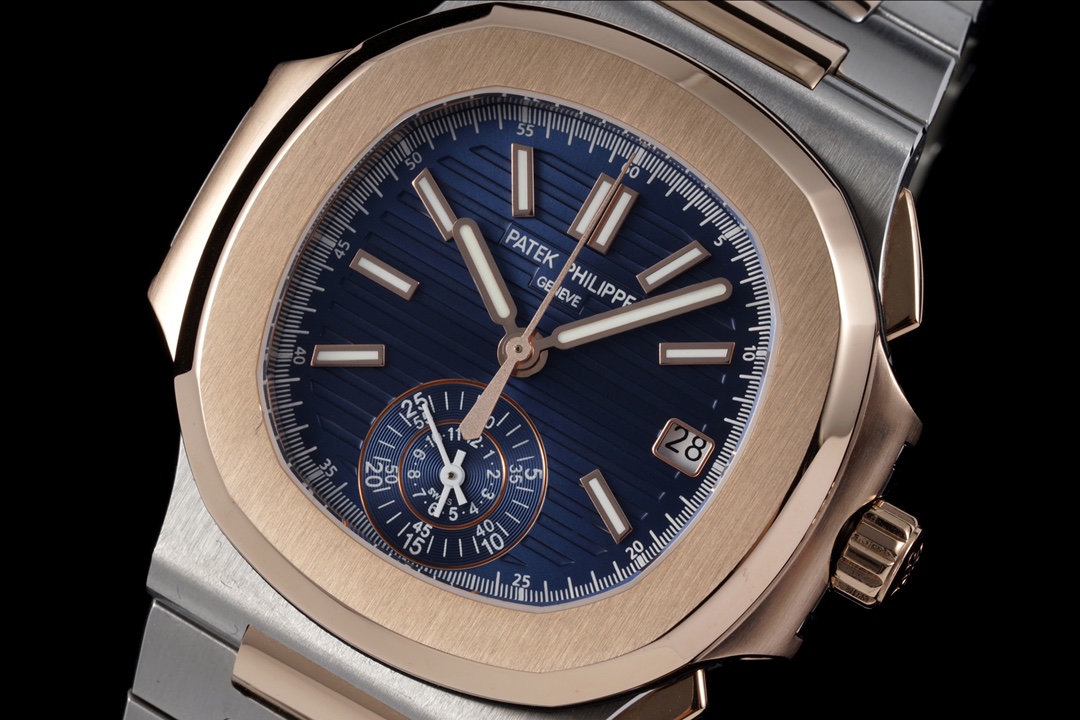 V2 Edition: Authentic Functions, Authentic Small Seconds! The 3K Factory proudly presents the V2 version of the Patek Philippe Nautilus 5980/1A-014 Multi-Function Chronograph—featuring authentic small seconds and authentic functions! 【Case】The watch measures 40.5 mm. The cushion-shaped case, identical to the genuine model, features a combination of brushed finish on the front and polished finish on the sides, creating distinct layers and a rich texture. It fully showcases exquisite craftsmanship. 【Strap】The strap is custom-made to match the original one-to-one. The polished center section of each link features a diamond-shaped design, exuding a premium feel. 【Movement】The 3K Factory utilizes a custom-made PP.CH28-520 movement that perfectly replicates the genuine model, featuring hours, minutes, seconds, date, and a chronograph large seconds hand. A masterpiece of 3K craftsmanship—we invite all watch enthusiasts to appreciate it!