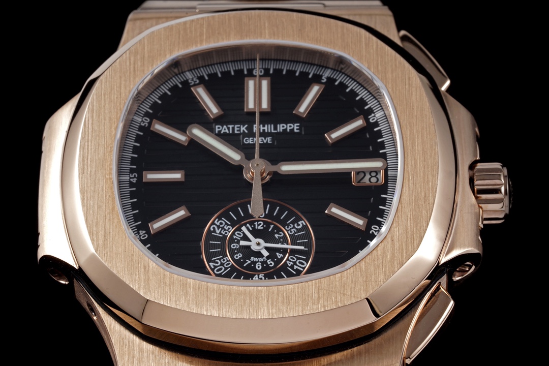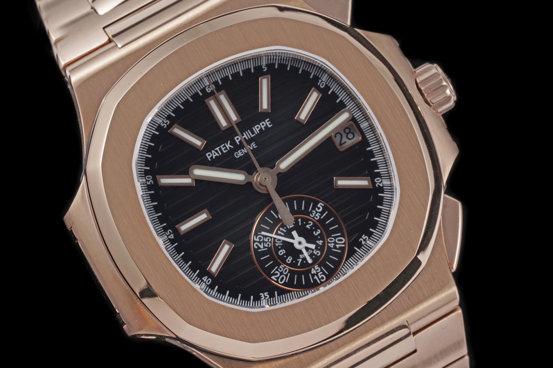V2 Edition: Authentic Functions, Authentic Small Seconds! The 3K Factory proudly presents the V2 version of the Patek Philippe Nautilus 5980/1A-014 Multi-Function Chronograph—featuring authentic small seconds and authentic functions! 【Case】The watch measures 40.5 mm. The cushion-shaped case, identical to the genuine model, features a combination of brushed finish on the front and polished finish on the sides, creating distinct layers and a rich texture. It fully showcases exquisite craftsmanship. 【Strap】The strap is custom-made to match the original one-to-one. The polished center section of each link features a diamond-shaped design, exuding a premium feel. 【Movement】The 3K Factory utilizes a custom-made PP.CH28-520 movement that perfectly replicates the genuine model, featuring hours, minutes, seconds, date, and a chronograph large seconds hand. A masterpiece of 3K craftsmanship—we invite all watch enthusiasts to appreciate it!