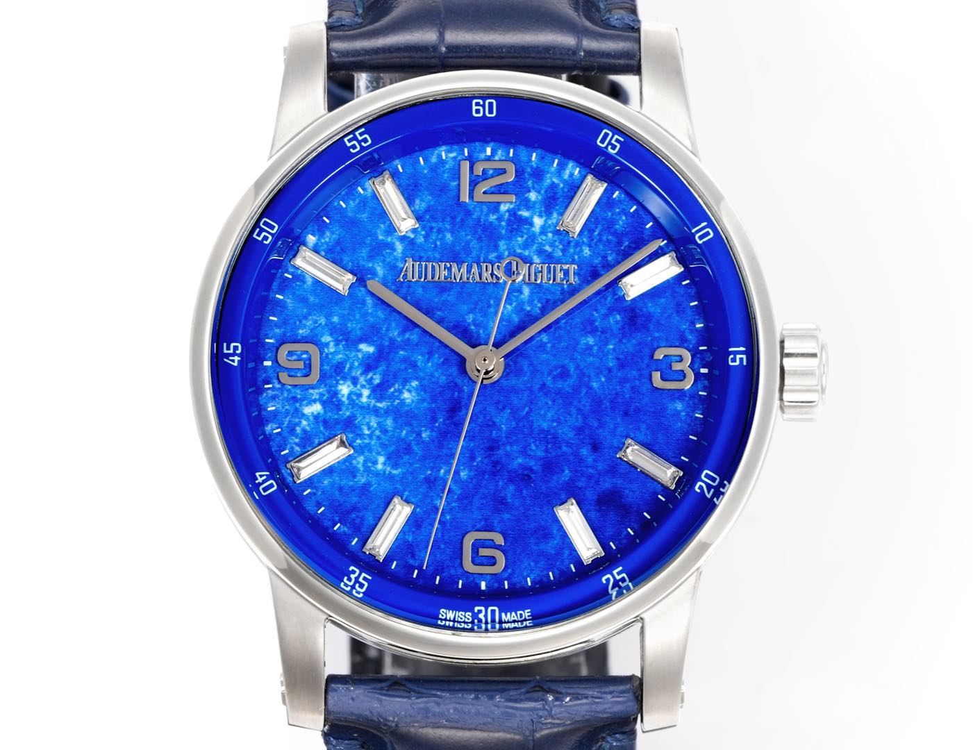 The Audemars Piguet CODE 11.59 series features a blue dial with a large three-hand movement. With a case diameter of 41 millimeters, this size makes the watch suitable for both men and women. At the same time, the design that blends an octagonal shape with a circular form sets this series apart from typical round-case watches.