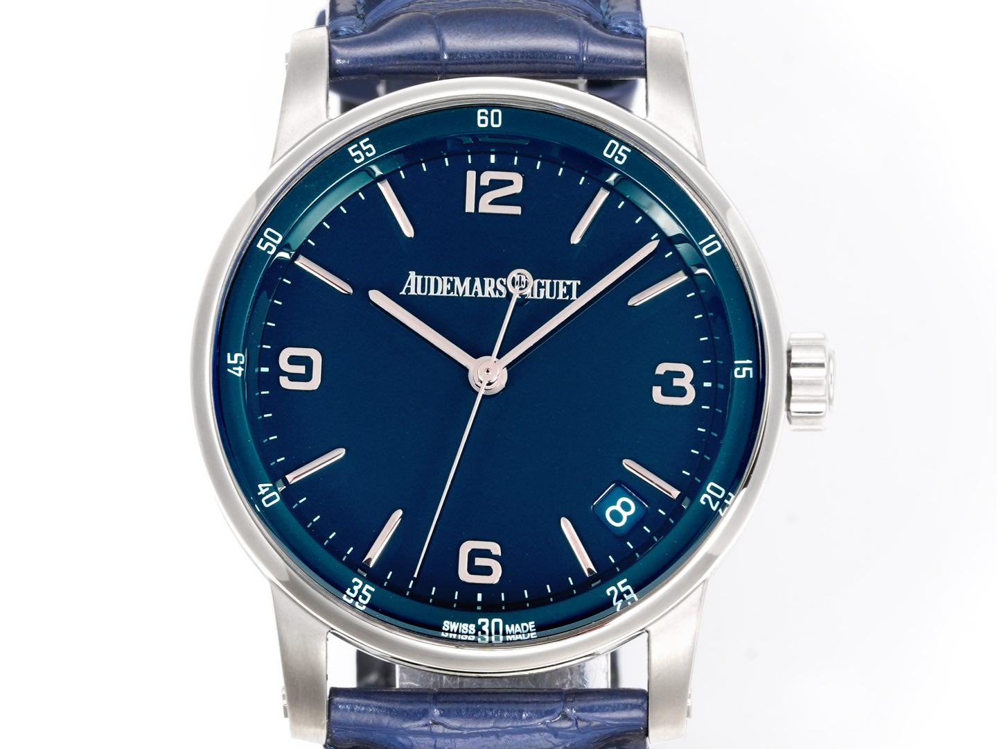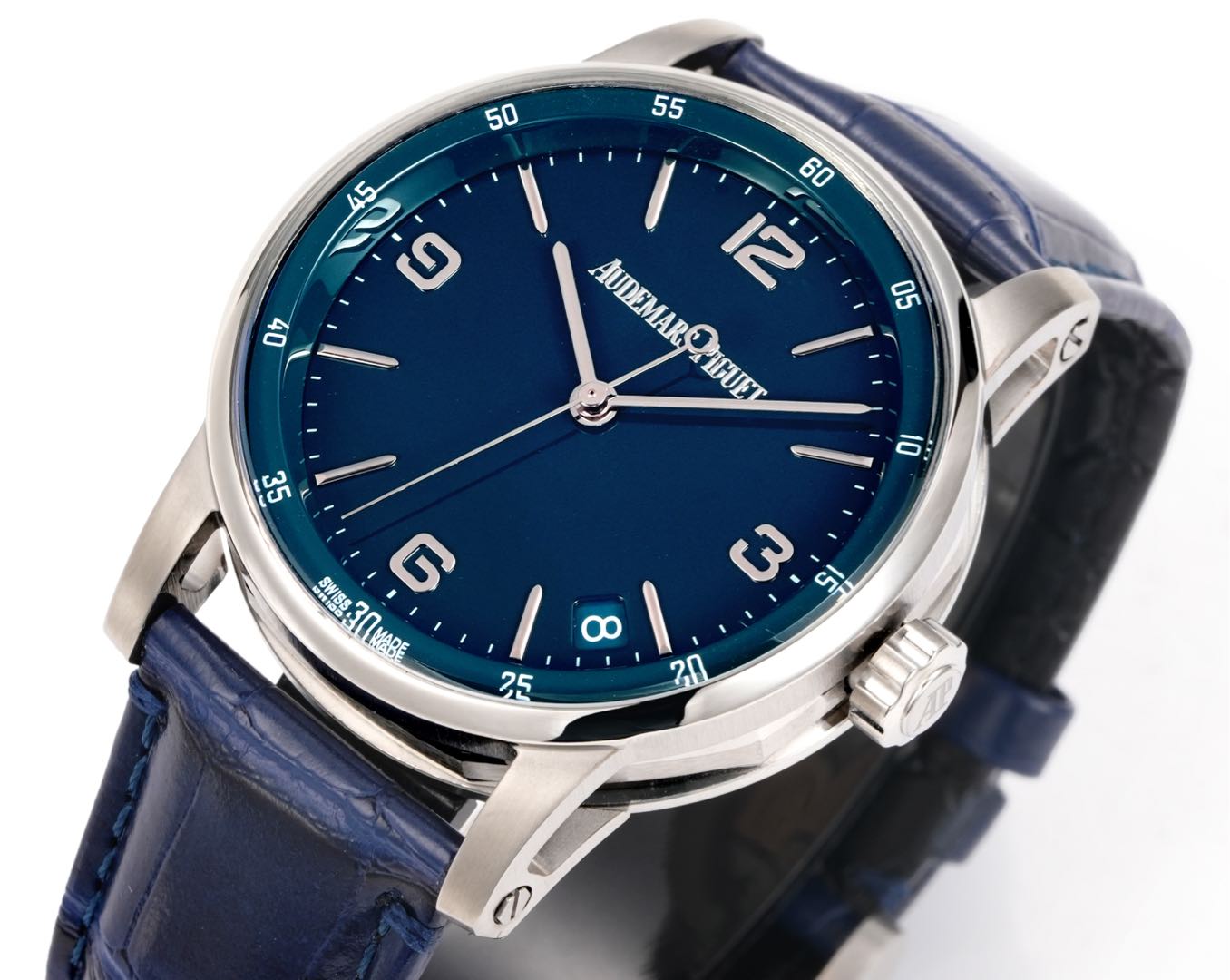 The Audemars Piguet CODE 11.59 series features a blue dial with a large three-hand movement. With a case diameter of 41 millimeters, this size makes the watch suitable for both men and women. At the same time, the design that blends an octagonal shape with a circular form sets this series apart from typical round-case watches.