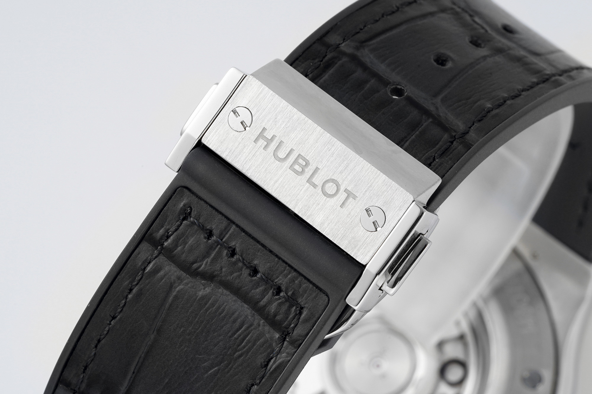 2⃣, The strap features an alligator-patterned front and a natural rubber back, providing the wearer with both sweat-wicking properties and the aesthetic appeal of genuine alligator leather.