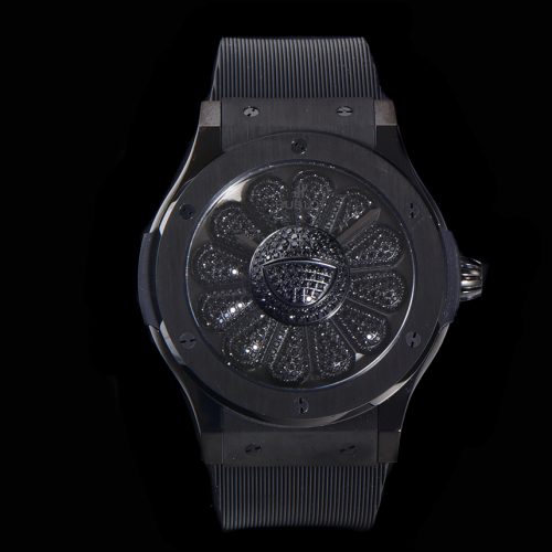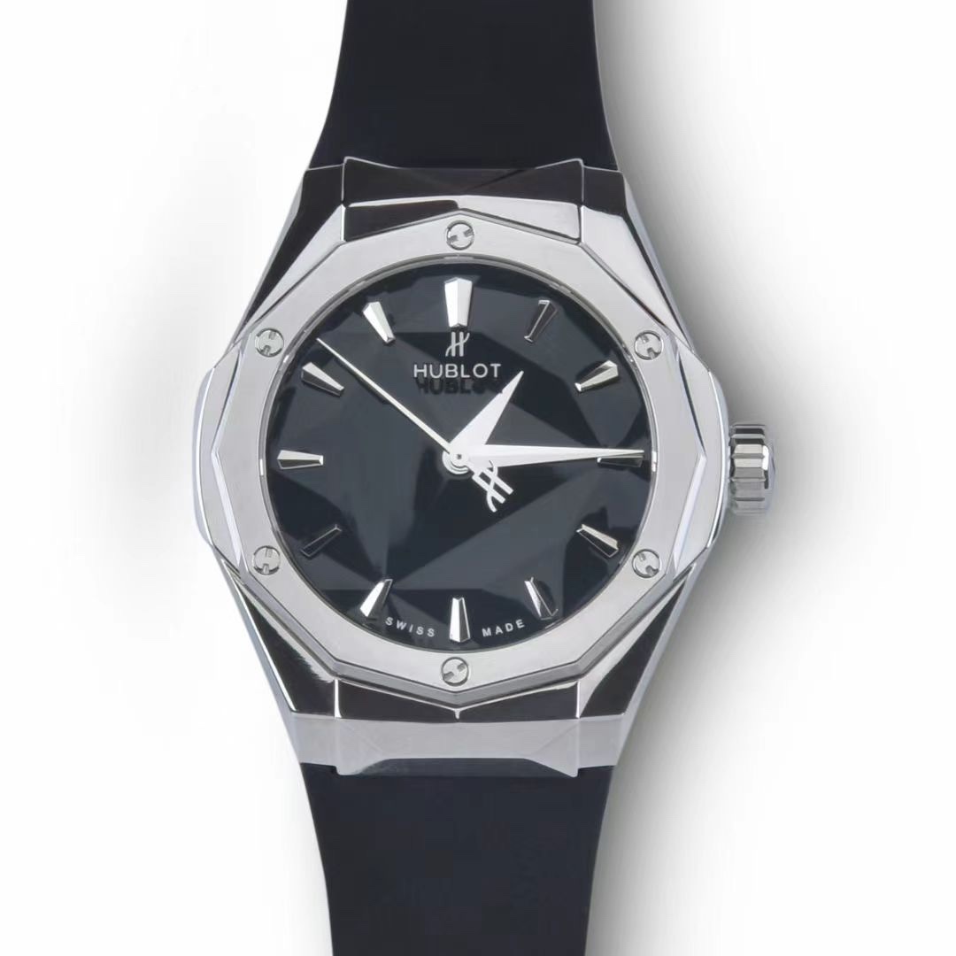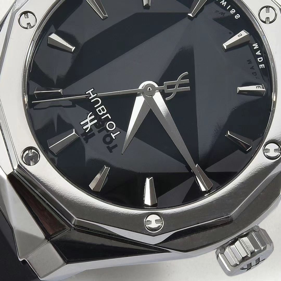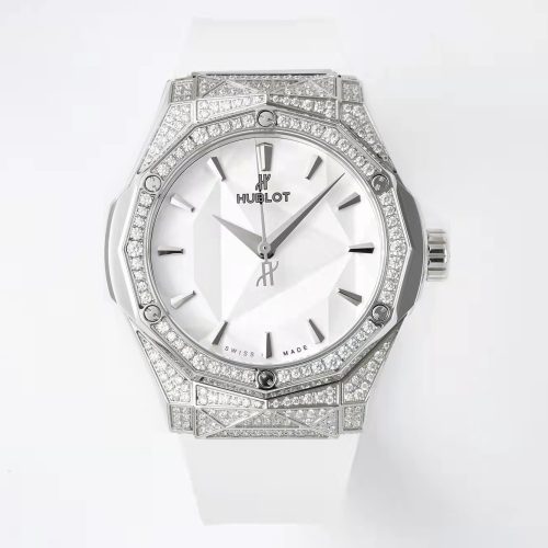 The second-generation Classic Fusion watch is a collaboration between Hublot and artist Richard Orlinski. This sculptor is known for using edges, chamfers, and faceted elements to create sharp, defined angles. The watch designed in collaboration with him incorporates these elements, scaled down to precise proportions on the dial, resulting in a stunning mirror-like effect. The iconic 12-sided bezel, along with the angular case and dial, also reflect a captivating glow.