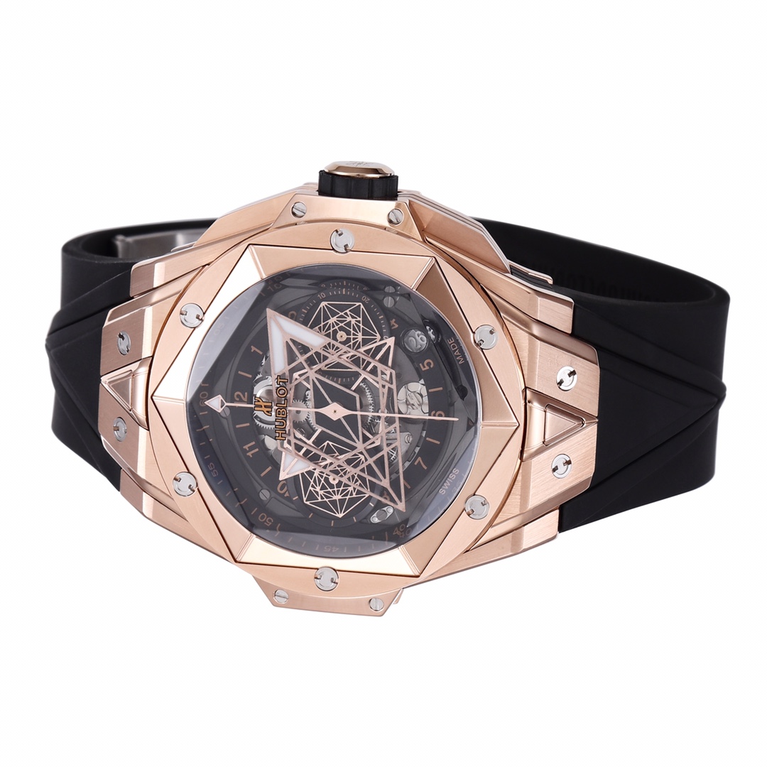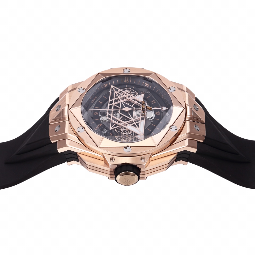 BBF Ultimate Replica HUBLOT’s New Big Bang Sang Bleu II Tattoo II Watch Hengbao’s Most Popular Model—the only one on the market featuring an all-titanium construction. Finished with polishing, satin-brushing, slicing, engraving, beveling, and faceting, it presents alternating layers of hexagons, diamonds, and triangles, creating a harmonious and captivating visual effect. Custom-made Hublot-exclusive UNICO HUB 1240 automatic flyback chronograph movement—the industry’s only replica featuring a 4.5 o’clock openwork date ring and window, a 60-minute chronograph at 3 o’clock (Note: 7750 movements on the market are limited to 30-minute chronograph), a horizontal clutch at 8 o’clock, and a small seconds wheel at 9 o’clock. The crown features the original half-tooth design with the engraved logo always facing upward. The sapphire crystal glass features a beveled edge, and the sandblasted hands with iridescent patterns offer impeccable texture. Dimensions: 45mm, thickness: 16.6mm, weight: 153g, with a similarity rate exceeding 95%. All functions are perfectly realized. Top-tier quality. We invite enthusiasts to appreciate this piece. (Produced by BBF—a guaranteed masterpiece.)
