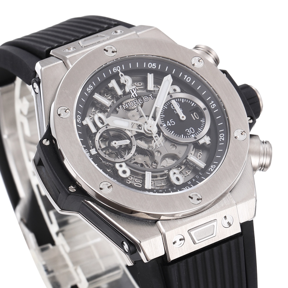 The Ultimate Version on the Market 🔥 BBF New Arrival: Hublot Big Bang Series – A Top-Tier Masterpiece. Features a brand-new, custom-made Hublot-exclusive UNICO HUB 1280 self-winding chronograph movement with a skeletonized date ring at the 3 o’clock position and a 60-minute chronograph sub-dial at the 3 o’clock position. (Note: All 7750 movements on the market are limited to 30-minute chronograph functions.) Horizontal clutch at the 8 o’clock position, small seconds wheel at the 9 o’clock position. Standard titanium construction, sapphire crystal glass, and iridescent hands with impeccable texture. 44mm diameter, 15.45mm thickness—exactly as specified. All functions are 100% perfectly executed, outshining every other factory in terms of detail and craftsmanship. This is the only Big Bang replica that rivals the genuine article—the absolute pinnacle of the market (Produced by BBF—Guaranteed to be a masterpiece)
