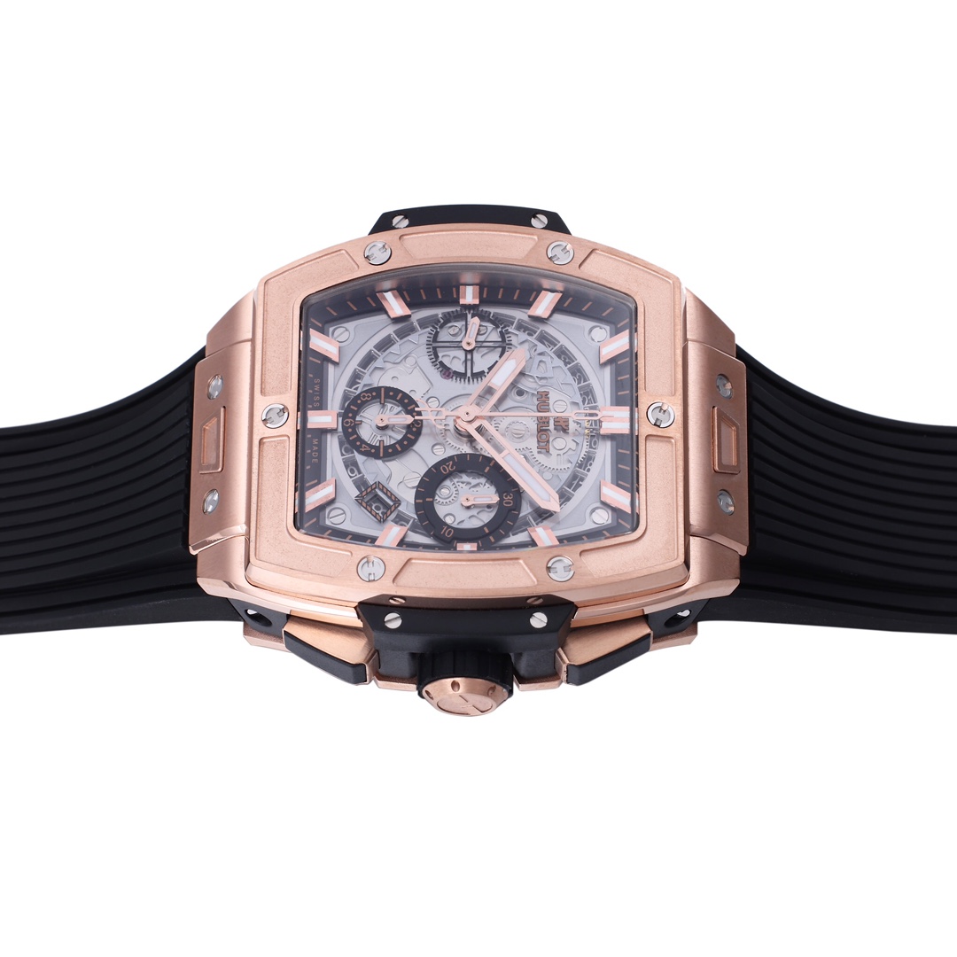 Hublot has infused the spirit of the Big Bang collection into another series, featuring a distinctive barrel-shaped design. The case of this collection employs an ingenious multi-layered structure, enabling the seamless integration of various materials, colors, and finishes. BBF 《Exclusive》HUB 4700 Automatic Chronograph Movement: The only brand on the market offering an authentic-replica skeletonized date ring. It is also the only one using the original material—Grade 5 titanium—making the watch lightweight and comfortable. 42mm sapphire crystal, iridescent hands, and a one-button quick-release rubber strap that is interchangeable with the original. Top-tier quality (BBF production—guaranteed excellence).