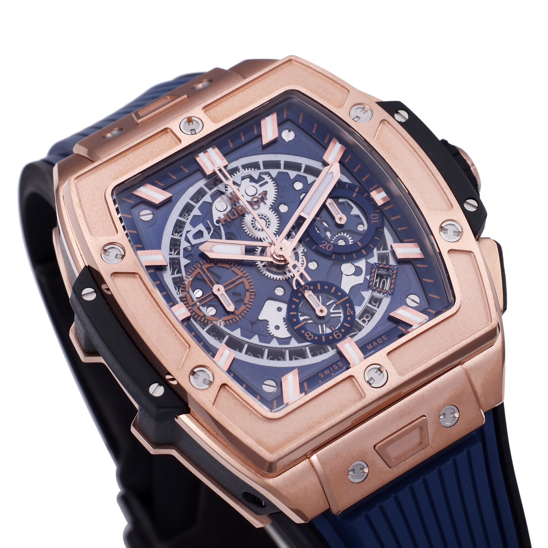 Hublot has infused the spirit of the Big Bang collection into another series, featuring a distinctive barrel-shaped design. The case of this collection employs an ingenious multi-layered structure, enabling the seamless integration of various materials, colors, and finishes. BBF 《Exclusive》HUB 4700 Automatic Chronograph Movement: The only brand on the market offering an authentic-replica skeletonized date ring. It is also the only one using the original material—Grade 5 titanium—making the watch lightweight and comfortable. 42mm sapphire crystal, iridescent hands, and a one-button quick-release rubber strap that is interchangeable with the original. Top-tier quality (BBF production—guaranteed excellence).