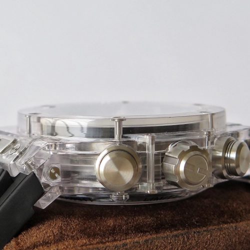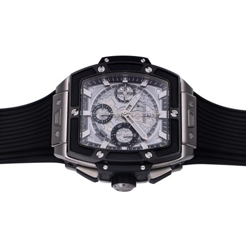 BBF’s Latest Masterpiece: Hublot Proudly Unveils the New SQUARE BANG UNICO Watch. Crafted from Grade 5 titanium, this timepiece is lightweight, comfortable, and fits perfectly on the wrist. Featuring a high-transparency sapphire crystal dial and upper and lower bridge-shaped sapphire crystals, it spares no expense in its construction. The watch is equipped with a textured rubber strap inspired by the Big Bang series and the market-acclaimed one-click quick-release system. It is powered by the exclusive Hublot HUB1280 movement Visible column wheel at the 6 o’clock position. Fully skeletonized date ring. A dual-counter display replaces the traditional dial, offering a clear view of the movement’s inner workings. The iridescent hands boast impeccable craftsmanship. 42mm. Top-tier quality—the ultimate configuration right out of the box, requiring no upgrades. We invite enthusiasts to experience this masterpiece.