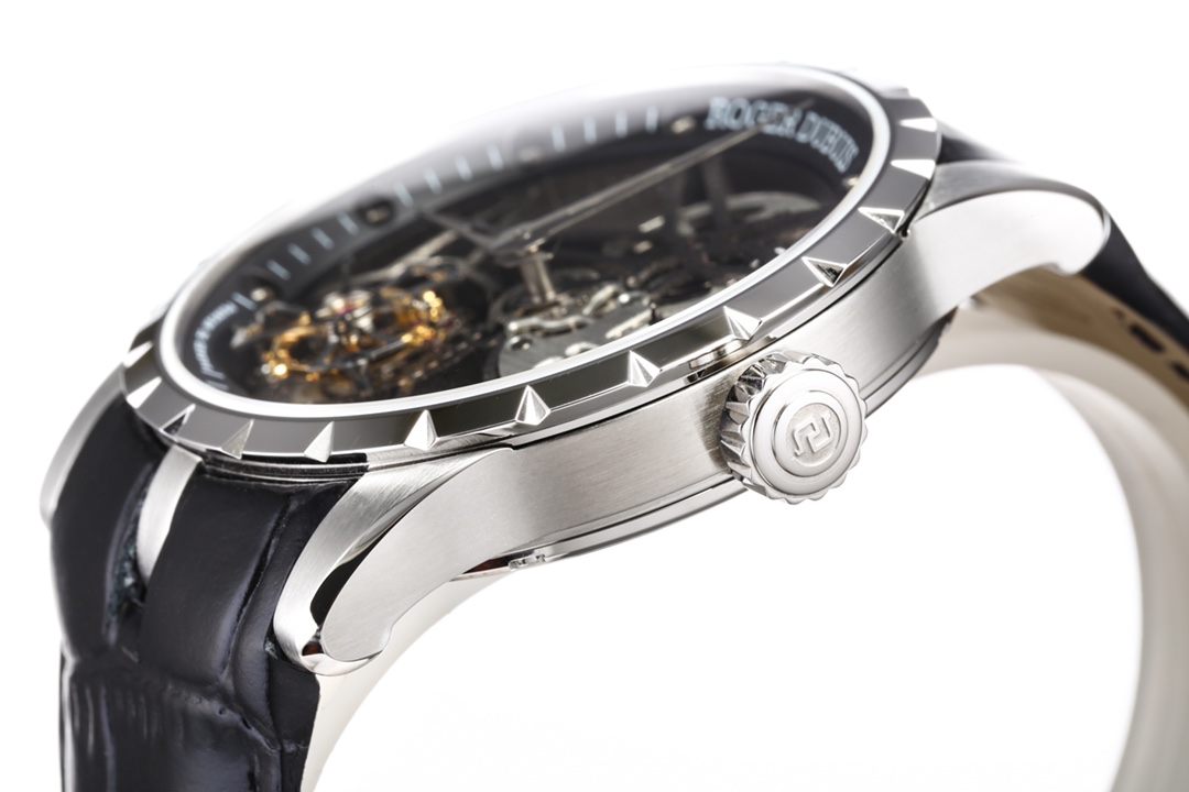 Replica watches always have certain inevitable limitations, but we have done our utmost to refine the imperfect details. With this newly developed Roger Dubuis King Series tourbillon movement, we have successfully cloned the RD505SQ skeletonized monobloc tourbillon movement (unlike other versions on the market, which use laminated movements).