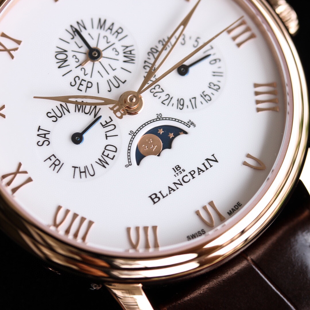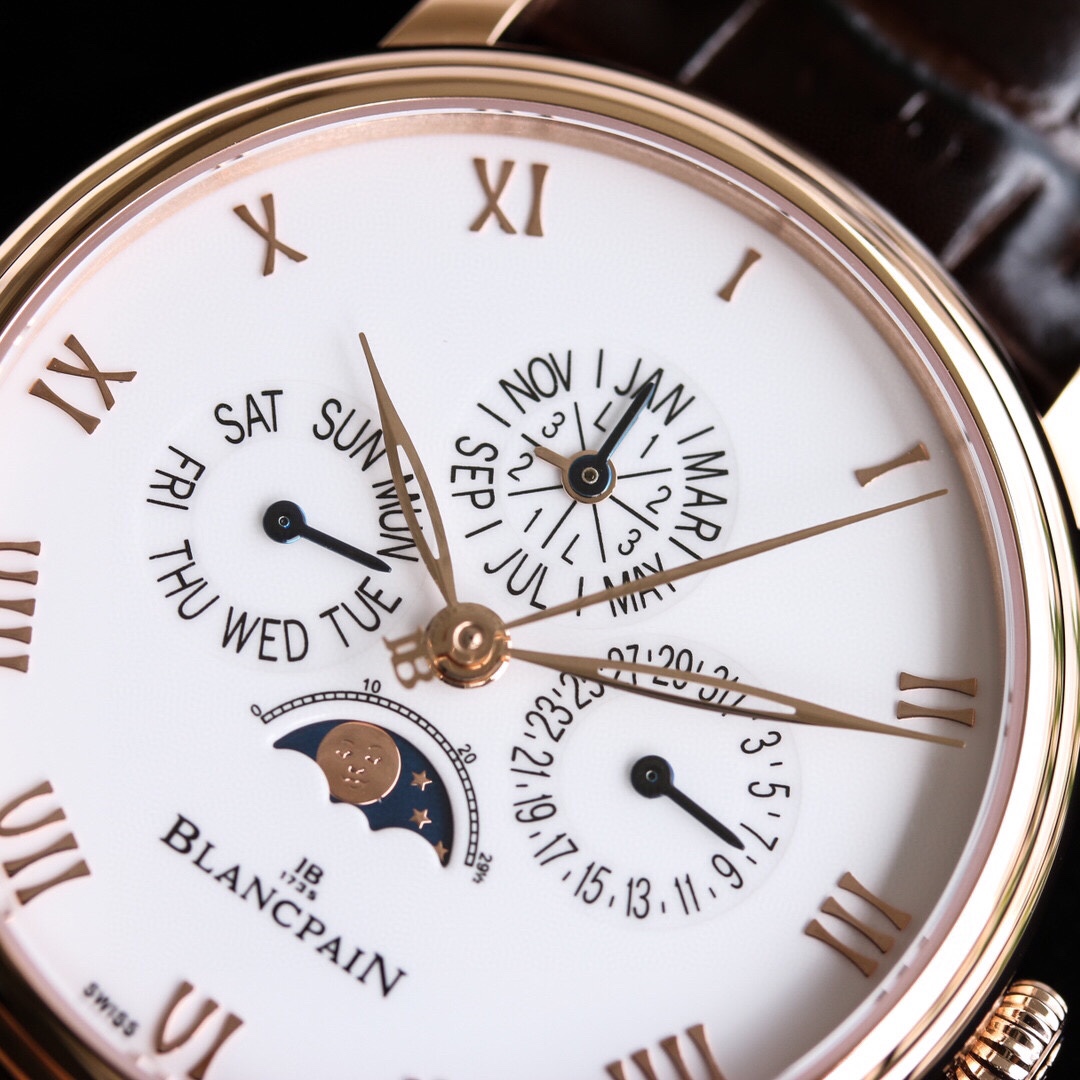 Blancpain Classic Series 6656 Automatic Mechanical Watch: Highly water-resistant and virtually trouble-free, this timepiece is equipped with a custom-made Cal. 6654 movement that not only delivers most functions but also ensures stable timekeeping. This is a rare, durable, and complex replica watch!