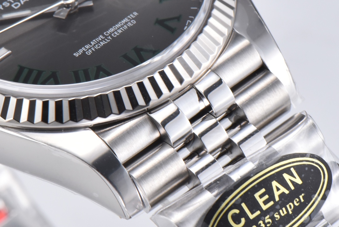 A series of genuine vs. replica comparisons will follow; for the green Datejust, please refer to the 41mm green comparison. The case and bracelet are still crafted from 904L stainless steel.