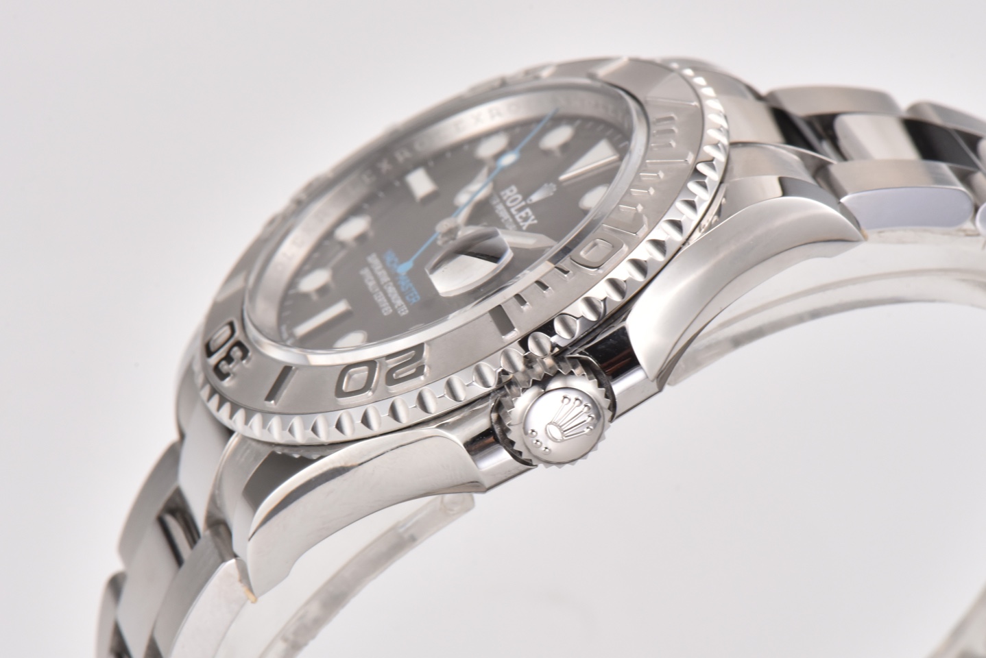 significant deviation. For all C Factory dials featuring colored sunburst patterns—such as the Submariner, various Datejust models, and this Yacht-Master—the authentic PVD plating process is replicated. This ensures consistent color output across production batches, eliminating tonal variations. Additionally, the thin plating layer allows the underlying sunburst texture to remain clearly visible. However, this approach incurs higher production costs.