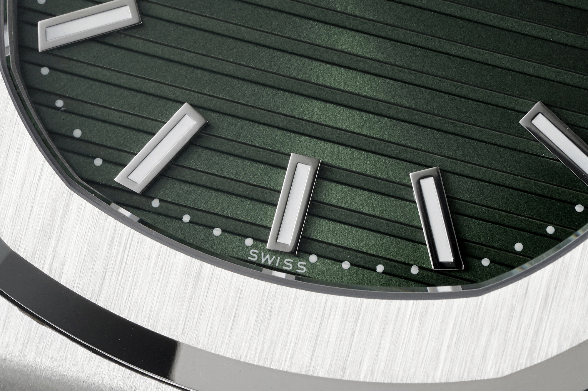 [2] The horizontal grooves on the dial are clear and delicate at the bottom with no fringing; the hour markers are rounded and consistent with the original.