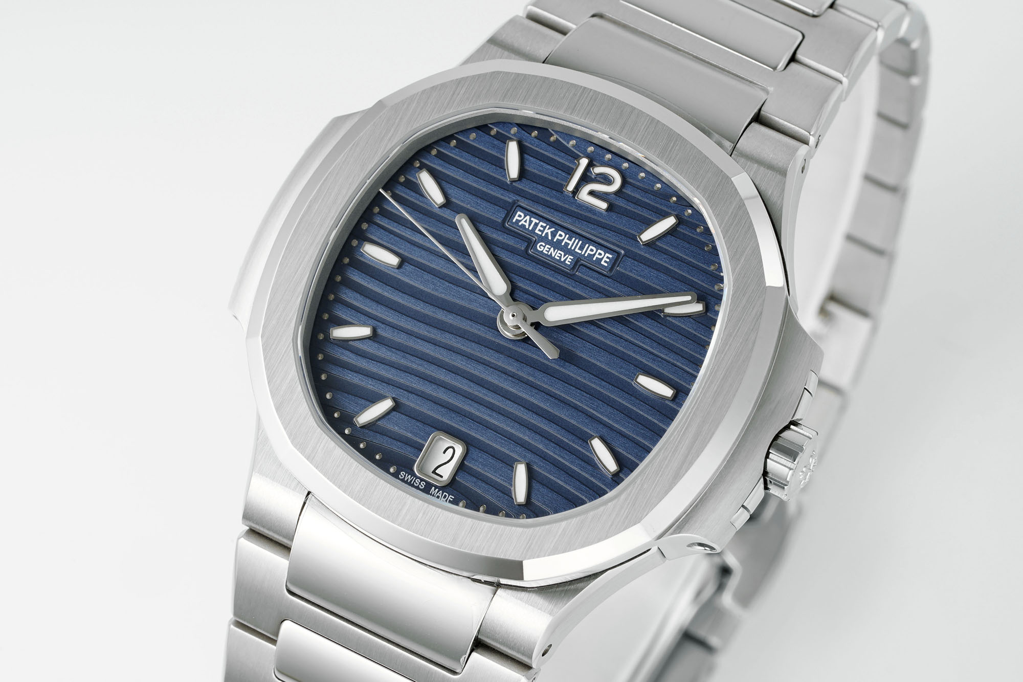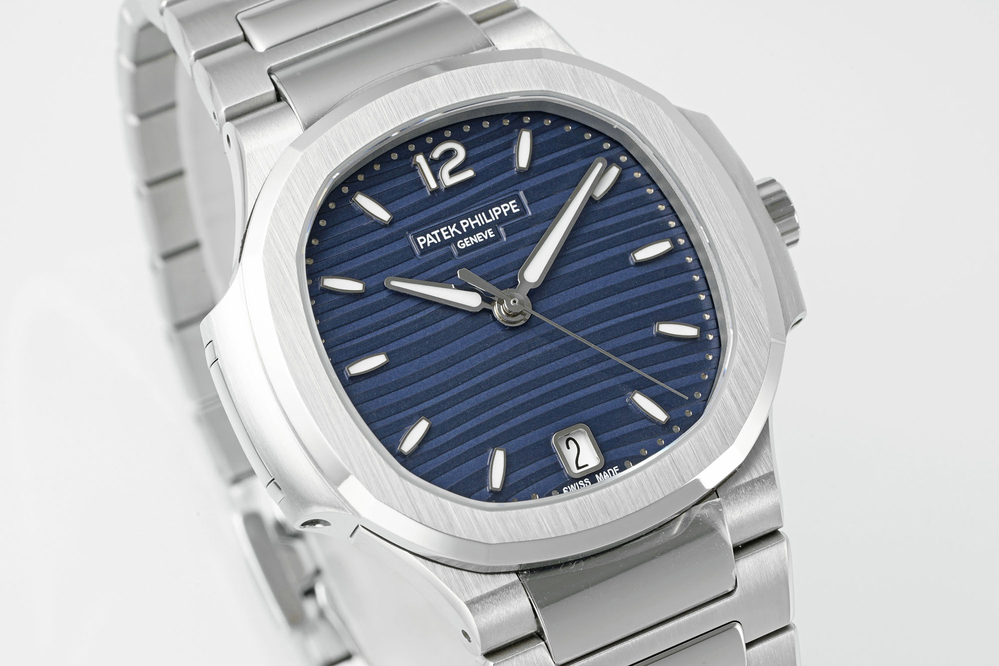DDF’s Most Beautiful Nautilus 7118 1: The most authentic silver-white finish available online; the white background with silver brushed wave patterns shimmers beautifully under light. 2: The beveled edges of the dial markers match the original, and the beading on the marker edges is the same exquisite size as the original. 3: The polished edges of the lugs feature uniform, smooth arcs. 4: The CNC-chamfered “eagle beak” corners on all four lugs match the original. 5: The case back’s protruding lugs, hook, and locking mechanism are precise and meticulously crafted. 6: The bracelet’s brushed finish is fine and uniform, with no variations in thickness or breaks in the pattern; the polished sections are three-dimensional, straight, and exceptionally bright. 7: Custom-made 324 integrated movement from the Dandong factory, 3.4mm thick, with finely engraved lettering; original factory production ensures stable quality. 8: The full tungsten steel automatic rotor matches the original in weight, providing sufficient power to drive the movement; the chain will not break. 9: The rotor’s base pattern follows the original, with the first stripe being fine lines; the finely engraved leaf pattern is a 1:1 replica, and the rotor plate features beveled edges that perfectly match the original.