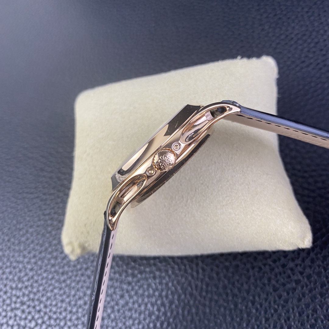 GR Factory’s latest “V2” upgrade version of the Patek Philippe 5205G-013 Complications series—the top-tier V2 version—features the following major breakthroughs: 1. Replaced with a brand-new Caliber 324 S QALU24H/206 automatic movement identical to the genuine model, with the balance wheel orientation matching the genuine version. 2. Pursuing perfection: The font on the main plate has been refined for greater detail, and the latest generation of pigeon’s blood ruby has been installed, achieving craftsmanship that closely matches the genuine article. 3: The 5205G lantern-style folding clasp is available for replacement at no additional cost. A contemporary masterpiece that combines exquisite artistry with practical functionality—we invite you to appreciate it.