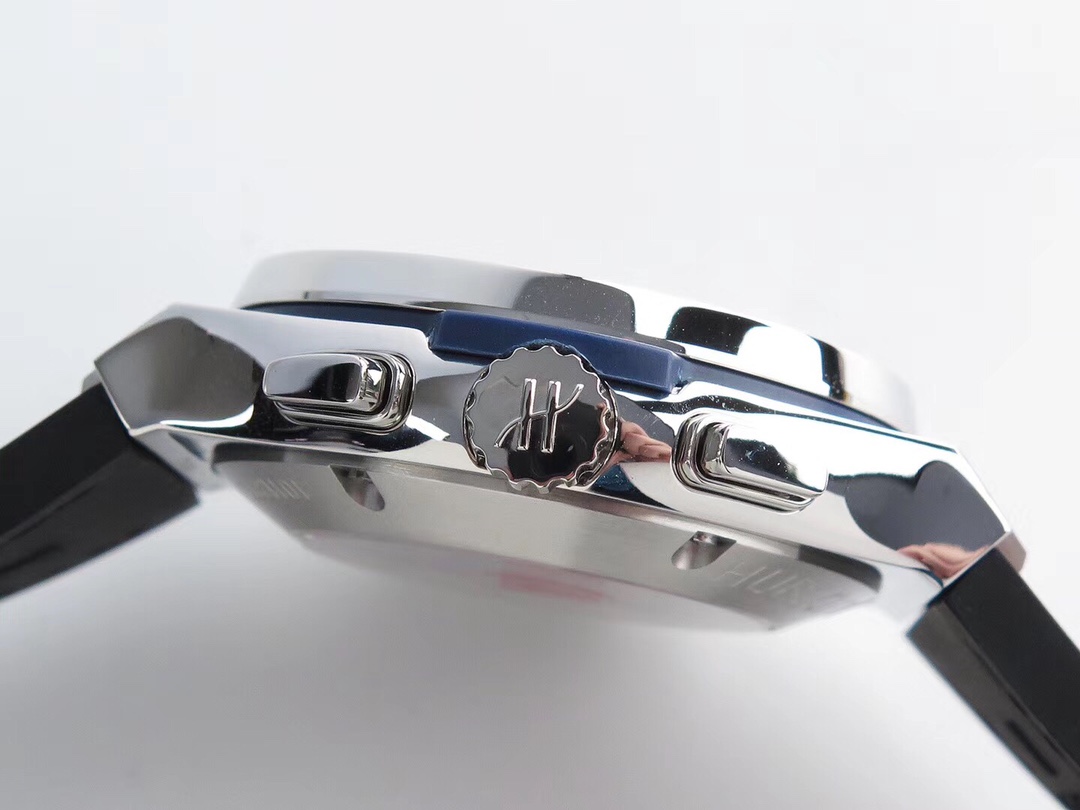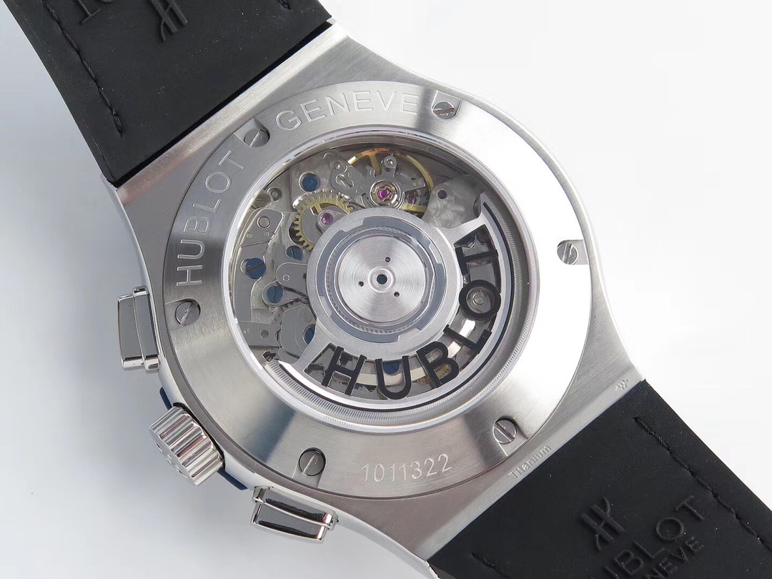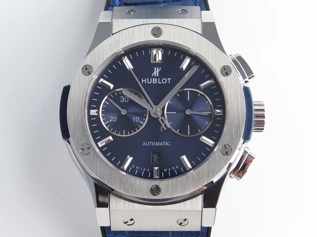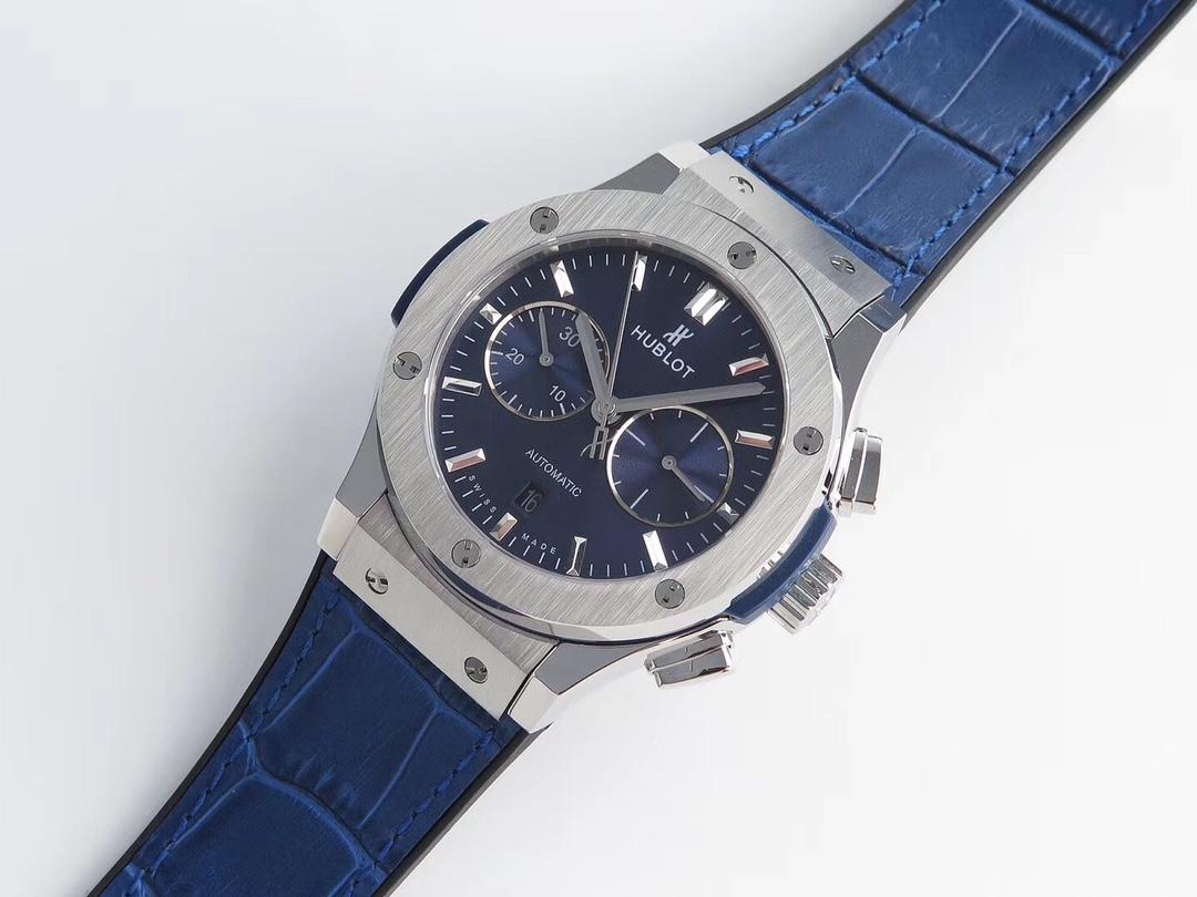 By HB, the Hublot Classic Fusion series, 45mm diameter, 316L stainless steel case, scratch-resistant sapphire crystal, equipped with an imported 7750 multi-function chronograph movement, replicating all functions of the original model, featuring a 24-hour sub-dial at the 3 o’clock position, a chronograph sub-dial at the 9 o’clock position, and a unique date display at the 6 o’clock position