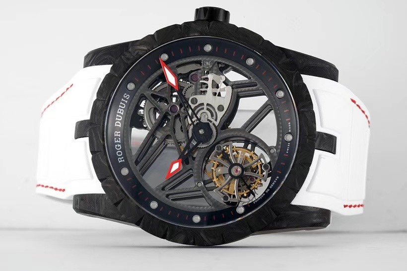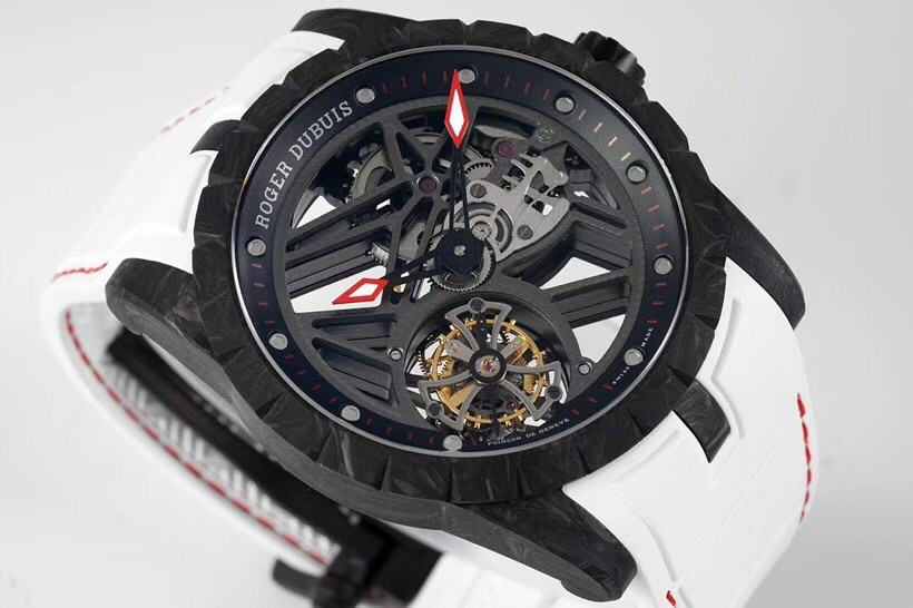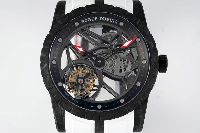 JBF has once again pushed the boundaries of replica watchmaking with the stunning debut of the all-new Roger Dubuis Carbon Fiber Tourbillon! EXCALIBUR (King Series) DBEX0577