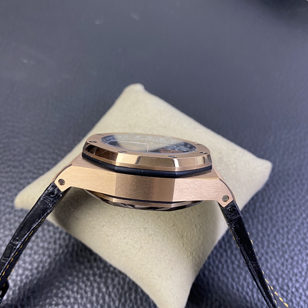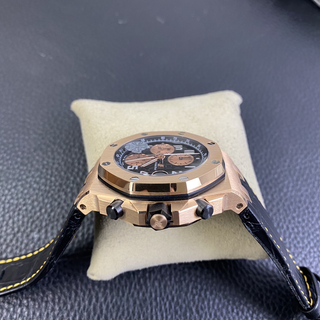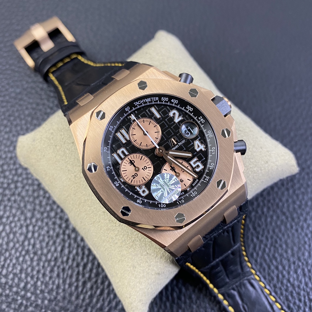 Royal Oak Offshore 26470 OR Full Rose Gold Ceramic Chronograph (Leather Strap). 42mm diameter! Features a replica of the original Cal. 3126 12-hour chronograph movement!
