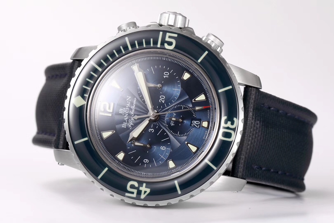 OM Factory’s Masterpiece: The Pioneer of Dive Watches—The Blancpain 50 Fathoms 5085F is Now Available. A Classic Replica. Boundless Depths. A Tough, Uncompromising Timepiece. A Born Bestseller. Super Luminous. A Robust Case Design. An Elegant Sapphire Bezel. Encounter an Instant Story; Own It to Make It Even More Legendary. Dedicated to You, Who Are Just as Legendary. [1] The 45×15.5mm stainless steel case features a fluted unidirectional rotating bezel. The edges are sharp, the texture is uniform, the flutes are identical, and the lettering is three-dimensional—an exact replica with no discernible difference. 【2】The bezel, crafted from scratch-resistant sapphire with a domed arch, features Swiss super-luminous hour markers on the inner surface—a truly luxurious touch. Sapphire is second only to diamond in hardness, and achieving this domed arch shape is extremely difficult to process with an extremely low yield rate; this is precisely where the 50 Fathoms’ charm lies. 【3】The Large 50 Fathoms features a sunburst dial paired with a “swim ring” bezel, elevating its luxurious appeal to a whole new level. 【4】The sporty canvas strap, equipped with a stainless steel folding clasp, ensures comfortable wear and adds a touch of charm. OM products are guaranteed to be premium quality. 🔥50 Fathoms🔥—a legend in its own right, dedicated to you, a legend as well!