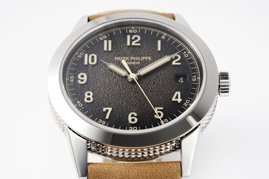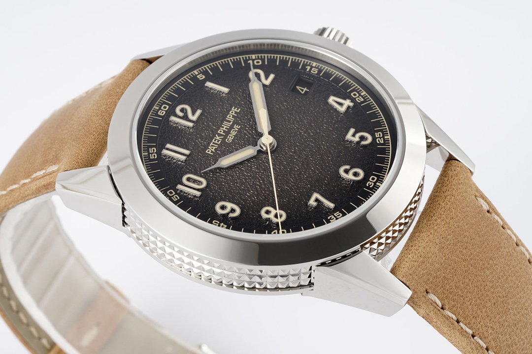 Diameter: 40 mm. Renowned for its simple and refined round case, Patek Philippe has refreshed the design by engraving a guilloché pattern along the case’s flanks, showcasing the brand’s elegant style. Additionally, the designers developed a special case construction that integrates the lugs with the case back, allowing the guilloché pattern to fully cover the sides of the case.