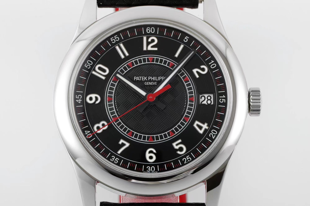 [Case] 40 mm. The fully polished stainless steel Calatrava case features clean lines and is regarded as a classic among round watches, as well as one of the outstanding representations of Patek Philippe’s style