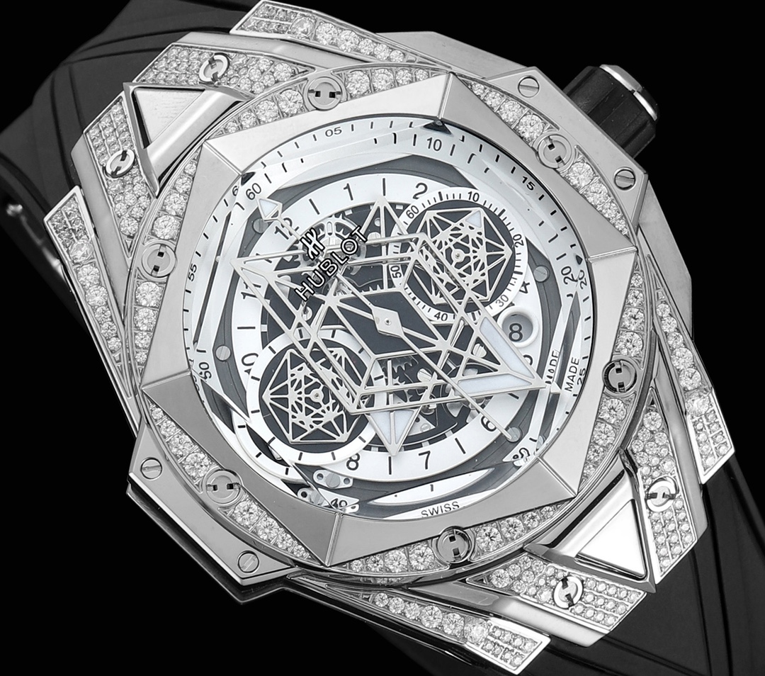 Hublot 🌐 The all-new Big Bang Sang Bleu II Tattoo Watch Once again collaborating with the renowned tattoo studio Sang Bleu, Hublot has unveiled another Tattoo II watch featuring a clever geometric design, perfectly embodying the brand’s ambition and design philosophy. The Big Bang Sang Bleu II features even more intricate line work, creating a vivid, three-dimensional visual experience. 1️⃣ With a 45mm case diameter, graphic elements run across the case, seamlessly integrated into the hexagonal bezel through precision cutting and engraving. Six H-shaped titanium screws securely fasten the bezel. The lugs feature a bold design with steep angles and sharp, angular lines. 2️⃣ The most striking feature of the dial is the diamond-shaped hour and minute hands, along with two hexagonal sub-dial hands, which create a unique geometric visual effect as the time changes. 3️⃣ The black rubber strap uses geometric lines to deliver a three-dimensional visual experience. 4️⃣ Easy-to-use folding clasp. 5️⃣ Powered by the 7750 automatic chronograph movement, featuring a titanium case back, satin-finished skeletonized hands, and a multi-faceted sapphire crystal with anti-reflective coating that is scratch-resistant. The imported fluororubber strap ensures exceptional comfort!!!