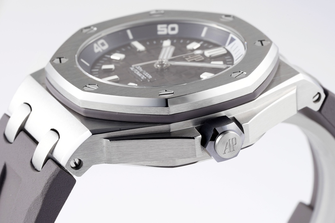ZF’s New Release: Meticulous Craftsmanship Dedicated to Audemars Piguet Dive Watches—The New Audemars Piguet 15720! The watch measures 42mm x 14.2mm. It features a stainless steel case paired with an anti-reflective sapphire crystal glass and case back, as well as a black ceramic screw-down crown. All specifications and materials have been verified through scanning and comparison. The movement features the market-exclusive, custom-made Calibre 4308 self-winding movement, ensuring stable timekeeping and worry-free after-sales service. The movement plates are polished for a more three-dimensional appearance. The rotor features a newly customized color scheme: a user-friendly shock-absorbing rotor tip, a dial engraved with the “Méga Tapisserie” large-scale checkered pattern, paired with luminous three-dimensional hour markers and Royal Oak-style hands. The black rotating inner bezel features a beige 0-to-15-minute zone filled with imported luminescent material, offering the longest-lasting glow and the most precise inner markings. The calendar window features a magnifying lens with consistent magnification. The removable, ultra-transparent strap uses the latest imported rubber material, creating a seamless sporty style. ZF makes its charm irresistible!