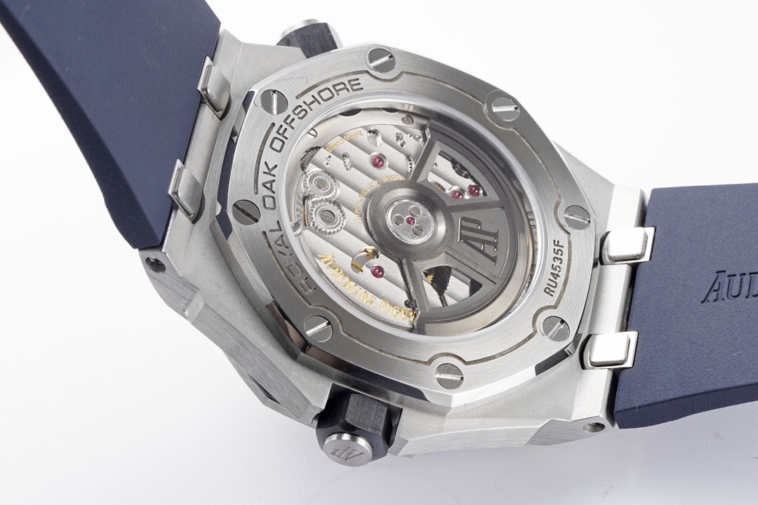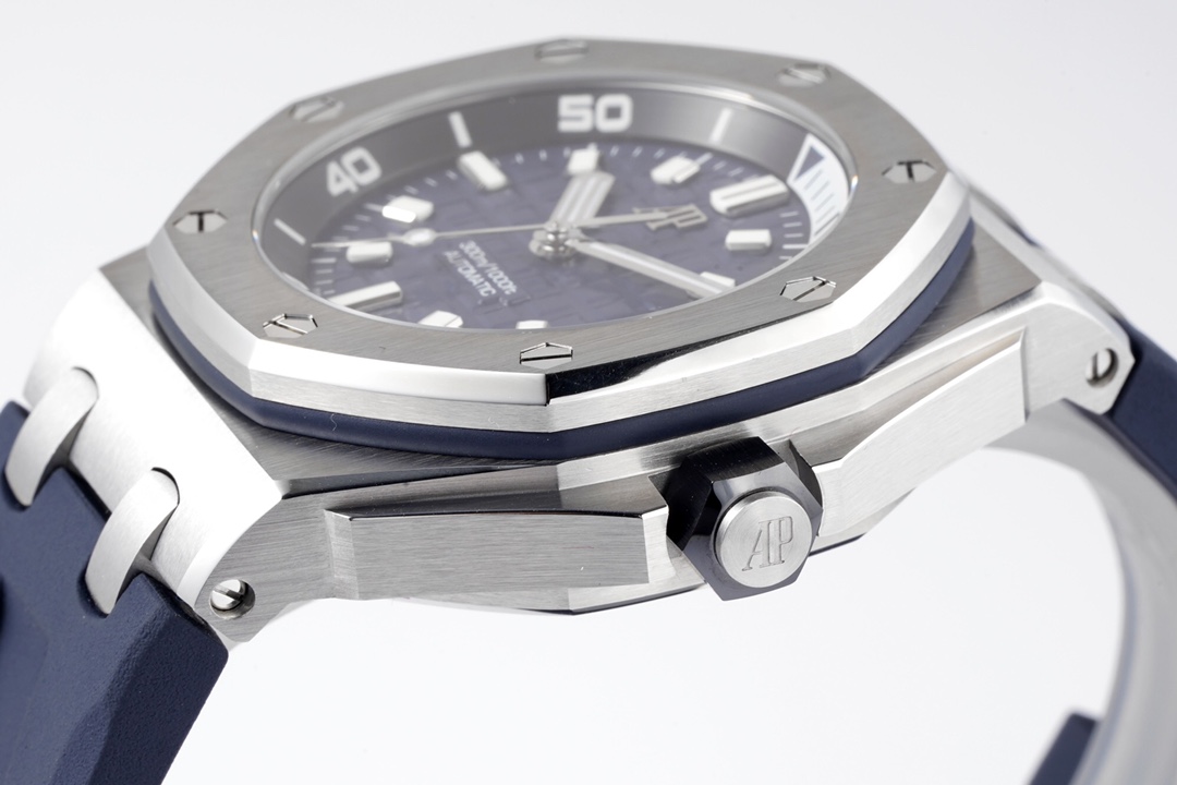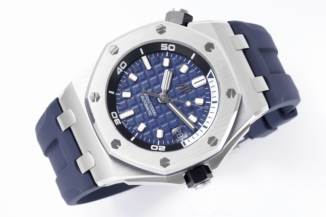ZF’s New Release: Meticulous Craftsmanship Dedicated to Audemars Piguet Dive Watches—The New Audemars Piguet 15720! The watch measures 42mm x 14.2mm. It features a stainless steel case paired with an anti-reflective sapphire crystal glass and case back, as well as a black ceramic screw-down crown. All specifications and materials have been verified through scanning and comparison. The movement features the market-exclusive, custom-made Calibre 4308 self-winding movement, ensuring stable timekeeping and worry-free after-sales service. The movement plates are polished for a more three-dimensional appearance. The rotor features a newly customized color scheme: a user-friendly shock-absorbing rotor tip, a dial engraved with the “Méga Tapisserie” large-scale checkered pattern, paired with luminous three-dimensional hour markers and Royal Oak-style hands. The black rotating inner bezel features a beige 0-to-15-minute zone filled with imported luminescent material, offering the longest-lasting glow and the most precise inner markings. The calendar window features a magnifying lens with consistent magnification. The removable, ultra-transparent strap uses the latest imported rubber material, creating a seamless sporty style. ZF makes its charm irresistible!