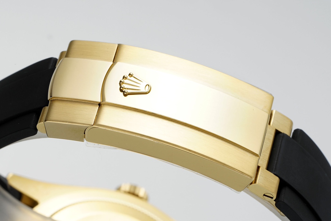 42MM Oyster case crafted from polished 904L stainless steel, featuring Rolex’s Ring Command triangular-grooved bidirectional rotating bezel. Rotating outer ring adjusts month function. The clasp is a folding Oysterlock with a 5mm Easylink extension system.